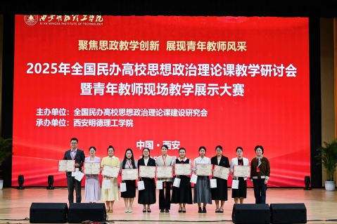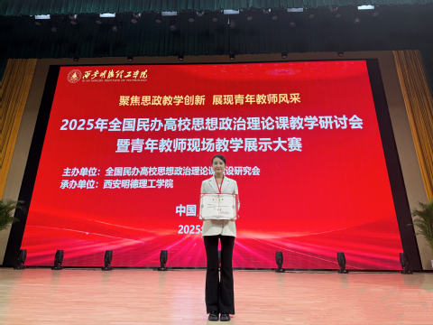 聚焦思政教学创新,展现青年教师风采。2025年9月21日,由全国民办高校思想政治理论课建设研究会主办、西安明德理工学院承办的“全国民办高校思想政治理论课教学研讨会暨青年教师现场教学展示大赛”在西安圆满落幕。太阳成集团tyc122cc青年教师姬晨曦凭借扎实的理论功底、出色的教学设计和精彩的现场展示,荣获大赛一等奖,为我校争得了崇高荣誉。