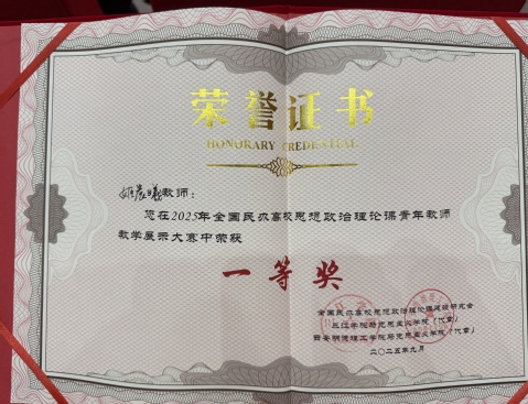 经过激烈角逐,姬晨曦老师最终脱颖而出,荣获大赛一等奖。这一成绩不仅是对其个人教学能力的充分肯定,也是我院长期以来重视思政课建设、狠抓教学质量、注重青年教师培养的成果体现。